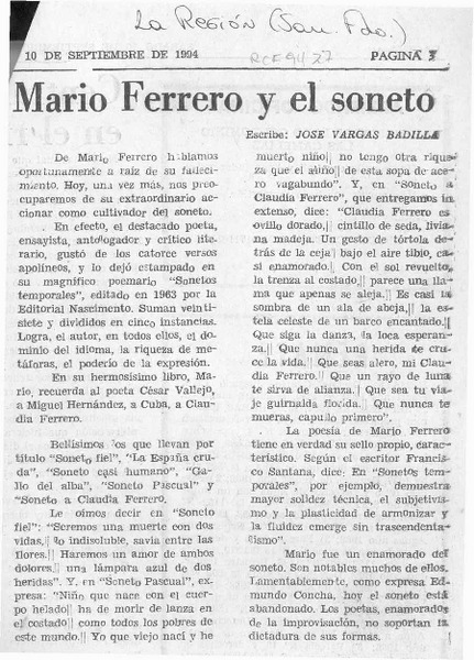 Mario Ferrero y el soneto [artículo] José Vargas Badilla.