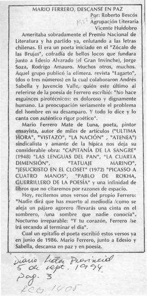Mario Ferrero, descanse en paz [artículo] Roberto Bescós.
