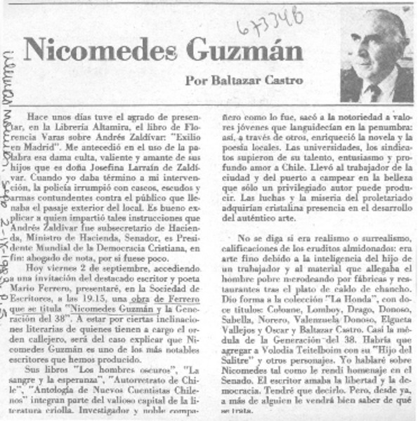 Nicomedes Guzmán [artículo] Baltazar Castro.