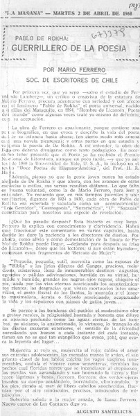 Pablo de Rokha, guerrillero de la poesía [artículo] Augusto Santelices.