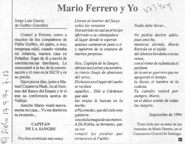 Mario Ferrero y yo [artículo] Jorge Luis García de Guiñez González.