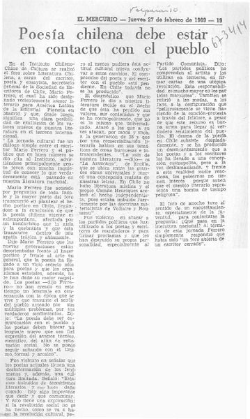 Poesía chilena debe estar en contacto con el pueblo [artículo].