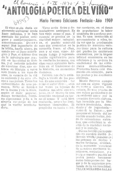 Antología poética del vino" [artículo] Félix Miranda Salas.