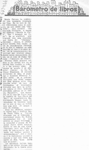 Ferrero, Mario - Autores chilenos - Anotología poética del vino