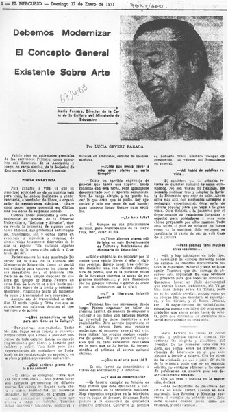 Debemos modernizar el concepto general existente sobre arte : [entrevista] [artículo] Lucía Gevert Parada.
