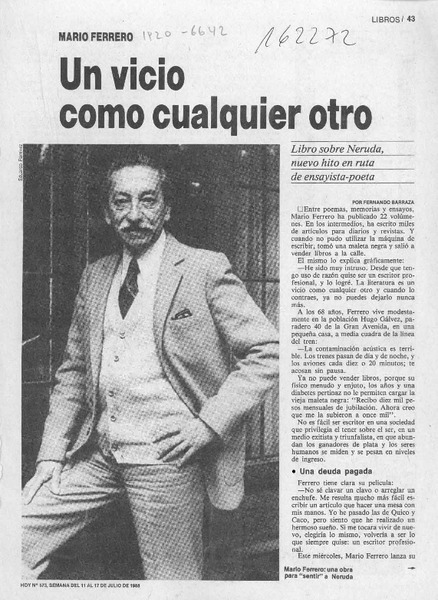 Autores chilenos - Entrevistas - Ferrero, Mario