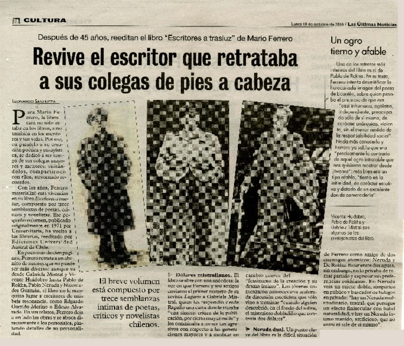 Revive el escritor que retrataba a sus colegas de pies a cabeza [artículo]Leonardo Sanhueza.