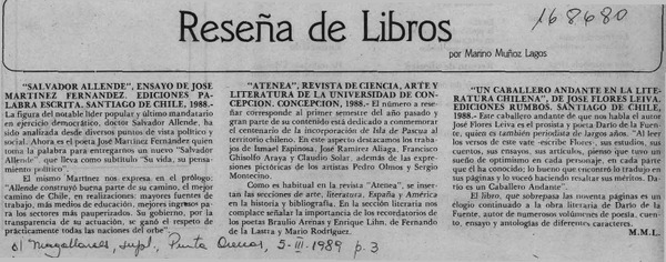 Reseña de libros [artículo] Marino Muñoz Lagos.