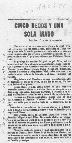 Cinco dedos y una sola mano [artículo] Orlando Almonacid.