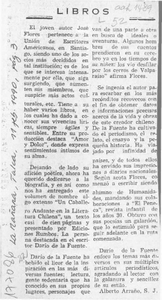 Autores chilenos - Fuente, Darío de la - Un caballero andante en la literatura chilena - Amor y dolor - Flores L., José
