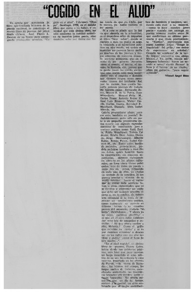 "Cogido en el alud" [artículo] Miguel Angel Díaz A.