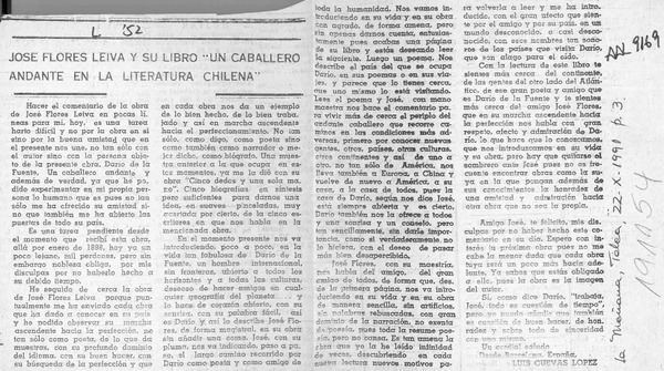 José Flores Leiva y su libro "Un caballero andante en la literatura chilena" [artículo] Luis Cuevas López.