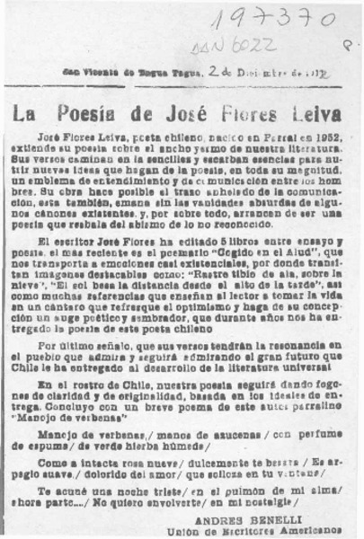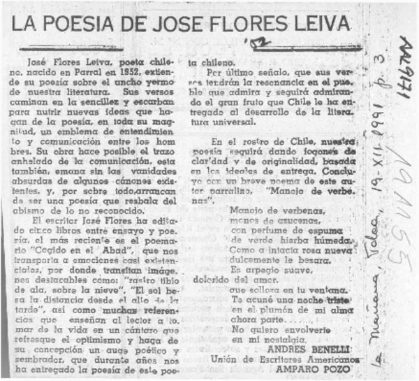La poesía de José Flores Leiva [artículo] Andrés Benelli.