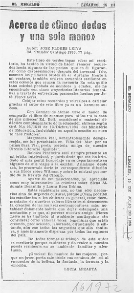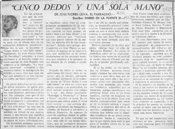 José Flores Leiva: "Cinco dedos y una sola mano" [artículo] José Arraño Acevedo.