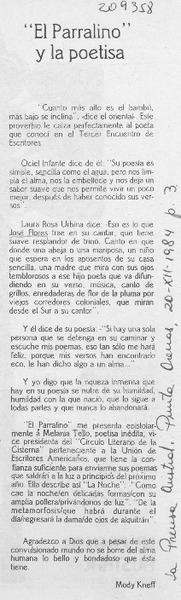 "El parralino" y la poetisa [artículo] Mody Kneff.
