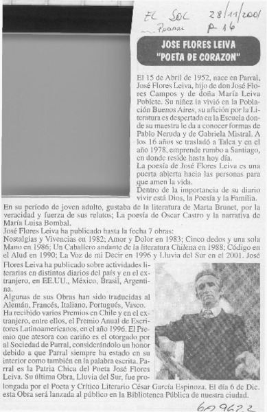 José Flores Leiva "Poeta de corazón" [artículo].