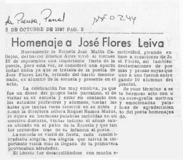 Homenaje a José Flores Leiva [artículo].
