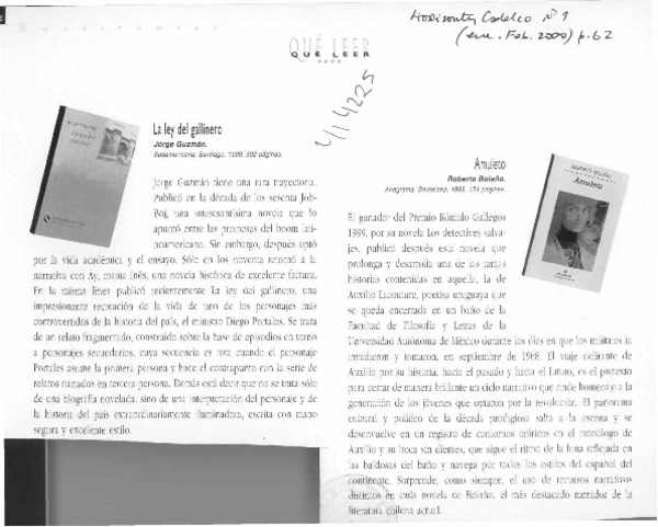 Autores chilenos - Ley del gallinero - Amuleto - Guzmán, Jorge - Bolaño, Roberto