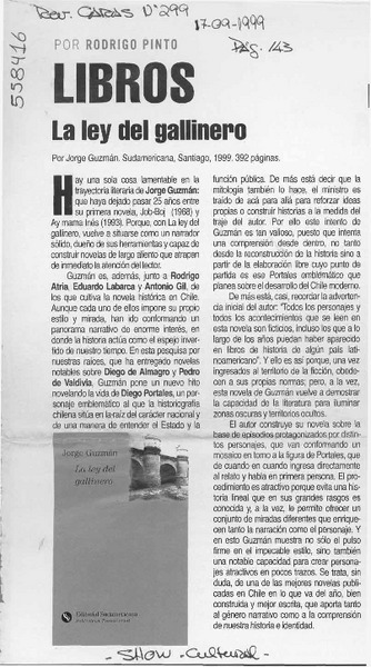 La ley del gallinero de Jorge Guzmán, una visión desmitificada de Portales [artículo] Eddie Morales Piña