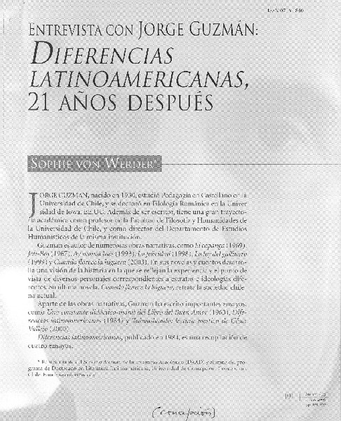 Diferencias latinoamericanas, 21 años después (entrevista) [artículo] Sophie von Werder.