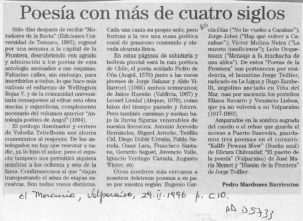 Poesía con más de cuatro siglos [artículo] Pedro Mardones Barrientos.