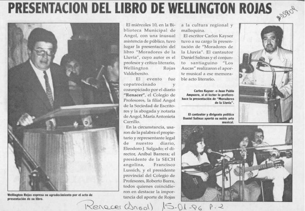 Lanzamiento del libro de Wellington Rojas [artículo] Luis Marín Cruces.
