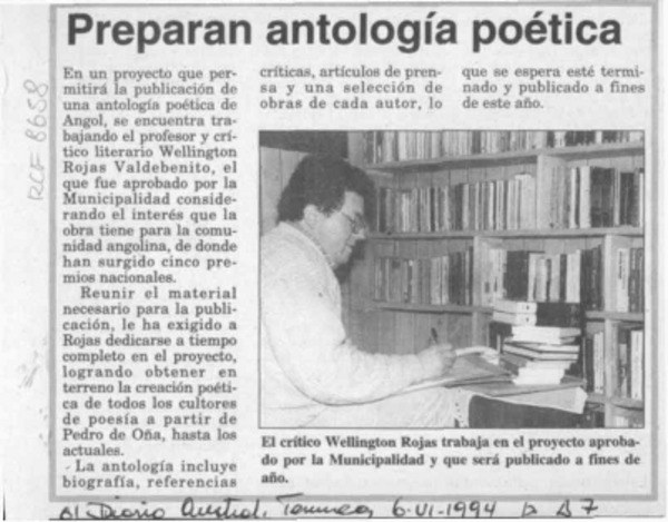 El Angolino Wellington Rojas presenta una antología poética [artículo].