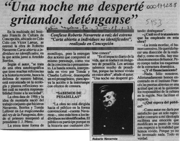 "Una noche me desperté gritando, deténganse" [artículo].