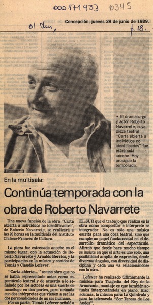 Continúa temporada con la obra de Roberto Navarrete [artículo].