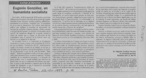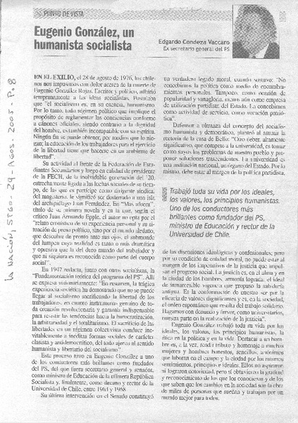 Eugenio González, un humanista socialista [artículo] Edgardo Condeza Vaccaro