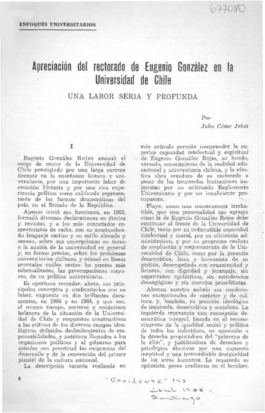 Apreciación del rectorado de Eugenio González en la Universidad de Chile [artículo] Julio César Jobet.