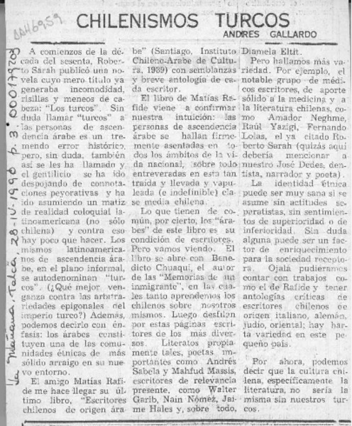 Chilenismos turcos [artículo] Andrés Gallardo.
