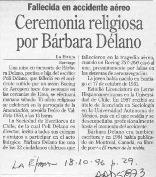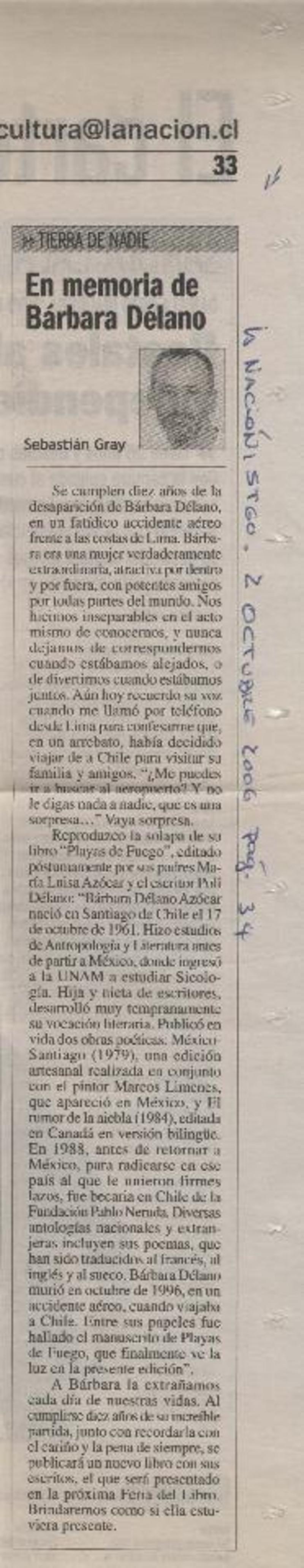 En memoria de Bárbara Délano [artículo] Sebastián Gray.