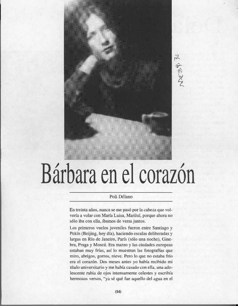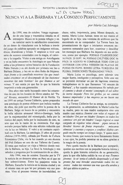 Nunca vi a la Bárbara y la conozco perfectamente [artículo] María Luz Moraga