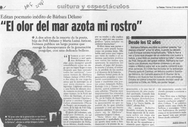 "El olor del mar azota mi rostro" [artículo] Andrés Gómez.