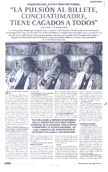 "La pulsión al billete, conchatumadre, tiene cagados a todos" (entrevista) [artículo] Catalina May.