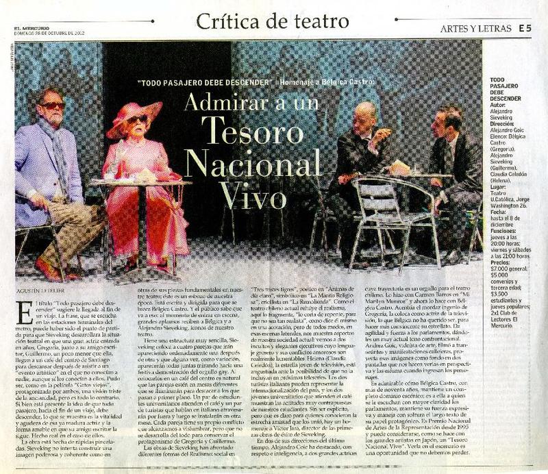 Bélgica Castro, 75 años de teatro [artículo] Pedro Bahamondes Ch.