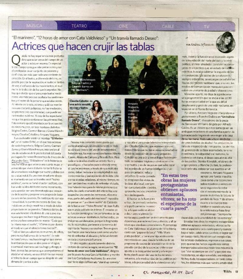 Actrices que hacen crujir las tablas [artículo] Andrea Jeftanovic.