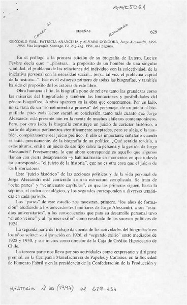 Jorge Alessandri 1896-1986, una biografía [artículo] Sofía Correa Sutil.