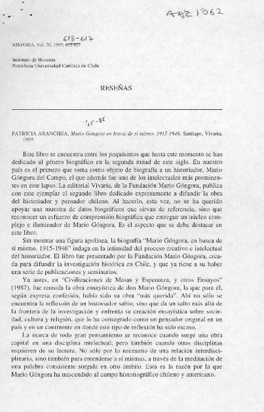 Mario Góngora en busca de sí mismo 1915-1946 [artículo] Joaquín Fermandois.
