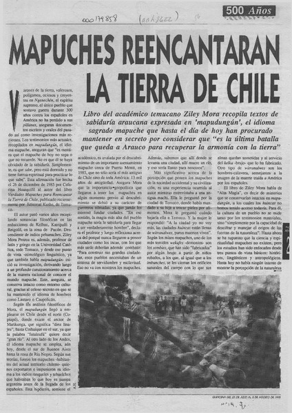 Mapuches reencantarán la tierra de Chile [artículo] Ignacio Iñíguez Aravena.