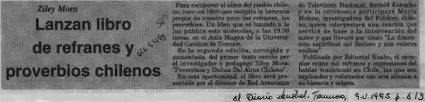 Lanzan libro de refranes y proverbios chilenos [artículo].