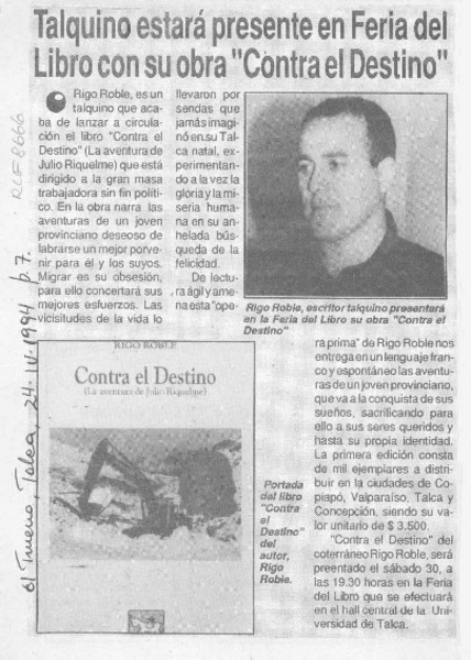 En "Contra el destino" Julio Riquelme busca su destino -- [artículo].