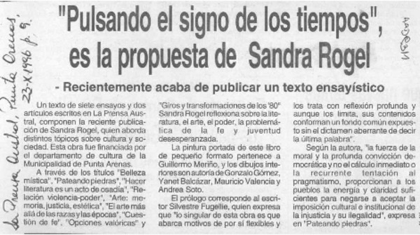 "Pulsando el signo de los tiempos", es la propuesta de Sandra Rogel [artículo].