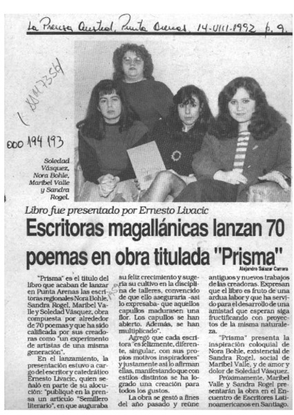 Escritoras magallánicas lanzan 70 poemas en obra titulada "Prisma" [artículo].