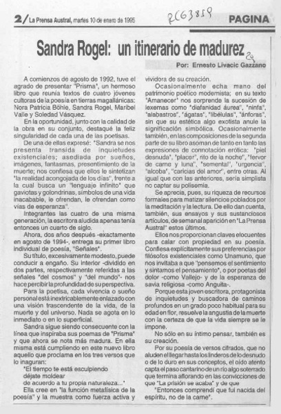 Sandra Rogel, un itinerario de madurez [artículo] Ernesto Livacic Gazzano.
