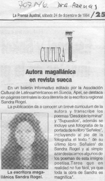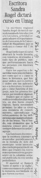 Escritora Sandra Rogel dictará curso en Umag [artículo].