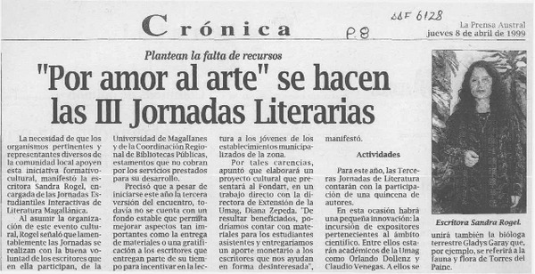 "Por amor al arte" se hacen las III Jornadas Literarias [artículo].
