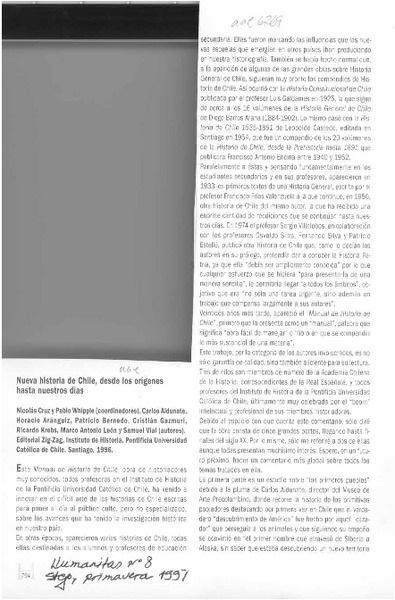 Nueva historia de Chile, desde los orígenes hasta nuestros días [artículo] Armando de Ramón.