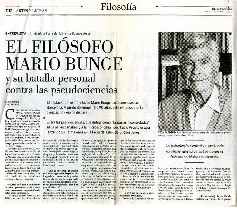 El filósofo Mario Bunge (entrevista) [artículo] Pedro Donoso.